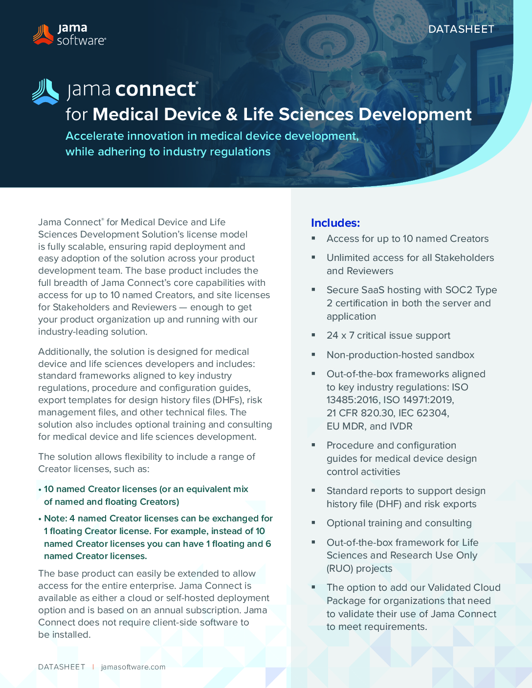 Jama Connect® for Medical Device & Life Sciences Development Datasheet