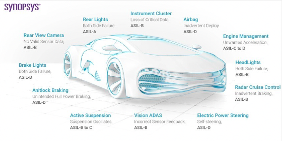 In general, systems such as anti-lock brakes or airbags require an ASIL D classification because the risks associated with failure are the highest in those systems. At the other end of the spectrum, a system such as rear lights would only require an ASIL A classification; while there is certainly a safety component associated with rear lights, most drivers could mitigate those risks, and the potential severity of injury is typically not high.