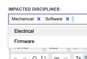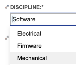 In addition to capturing the impacted disciplines in the system requirement, the configuration requires subsystem requirements capture the single owning discipline, as shown below using a single select field:
