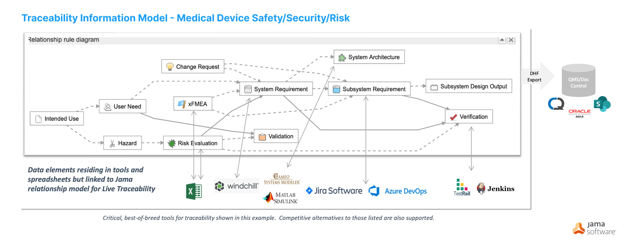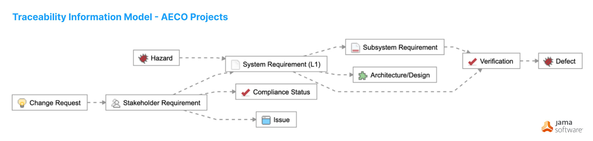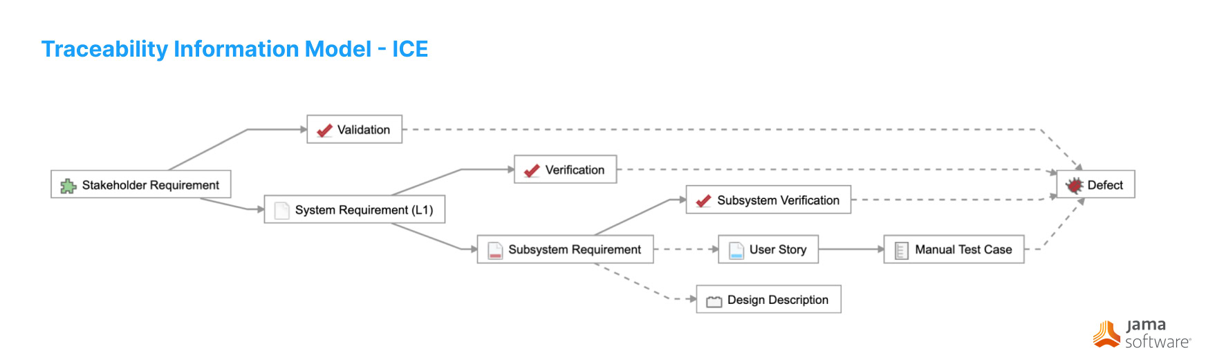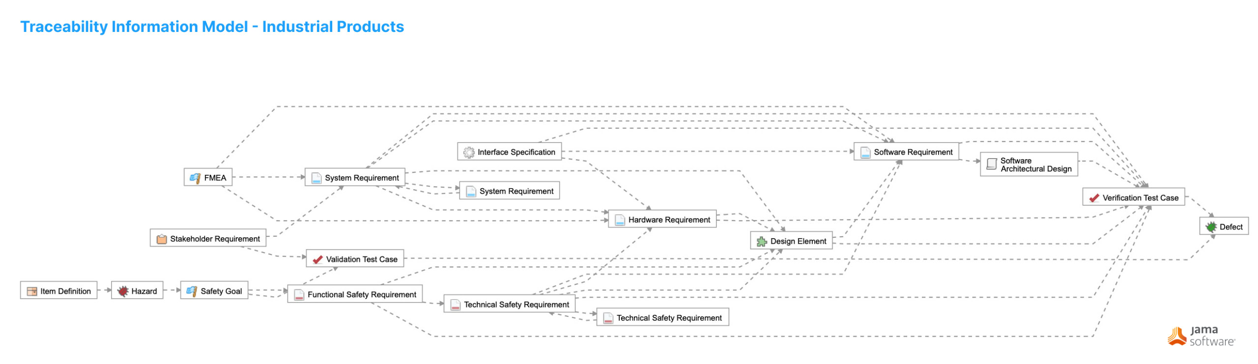 Jama Connect’s unique and industry-specific Traceability Information Models define the relationships and expected behavior across teams and tools.