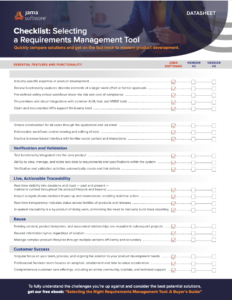 Have confidence that you’re selecting the right requirements management solution by downloading our checklist for essential features and functionality.